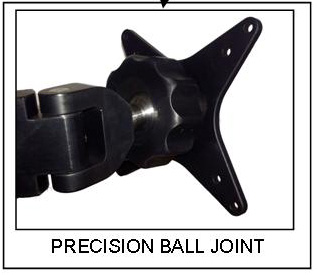 Our newly developed monitor lift arms are precision engineered for years of use. They are constructed from billet aluminium, anodised satin black or trendy silver and manufactured on our modern CNC machines. All fasteners and low friction pivot points are stainless steel.