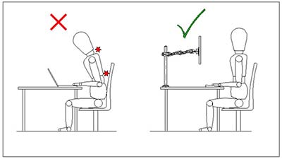 - The screen can be set at a comfortable working height to take away neck and upper back strain