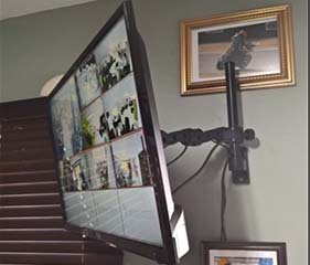 For the smaller business with multiple cameras the placement of the monitor can be a problem. Usually, with the pictures on the screen, the monitor has to be on the desk of the viewer, creating a space issue. Putting the monitor elsewhere, such as on a side desk, or book case, the pictures are hard to see.