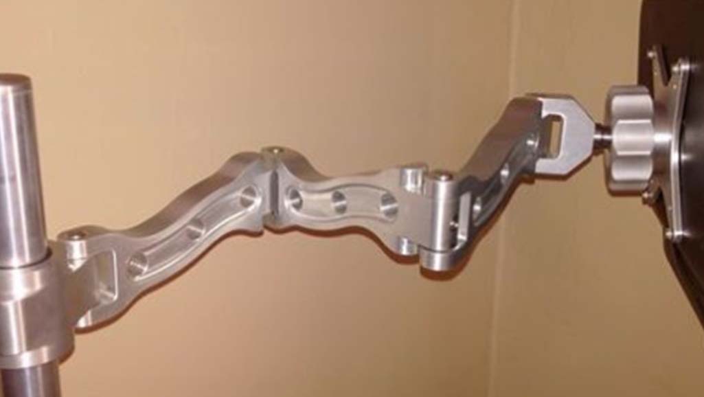 Our newly developed monitor lift arms are precision engineered for years of use. They are constructed from billet aluminium, anodised satin black or trendy silver and manufactured on our modern CNC machines. All fasteners and low friction pivot points are stainless steel.