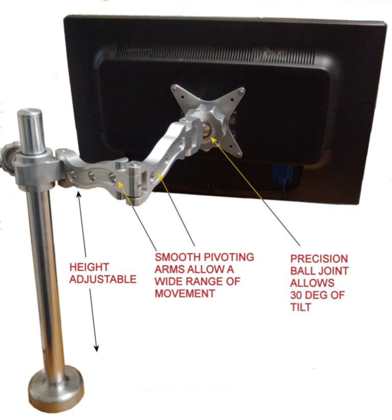 - Fully height adjustable, with swing arms that allow the screen to be positioned easily.